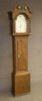 1775 Eight day clock oak and mahogany case. height 82 inches brass arch dial. This clock was exposed for sale 2008 at £3950.